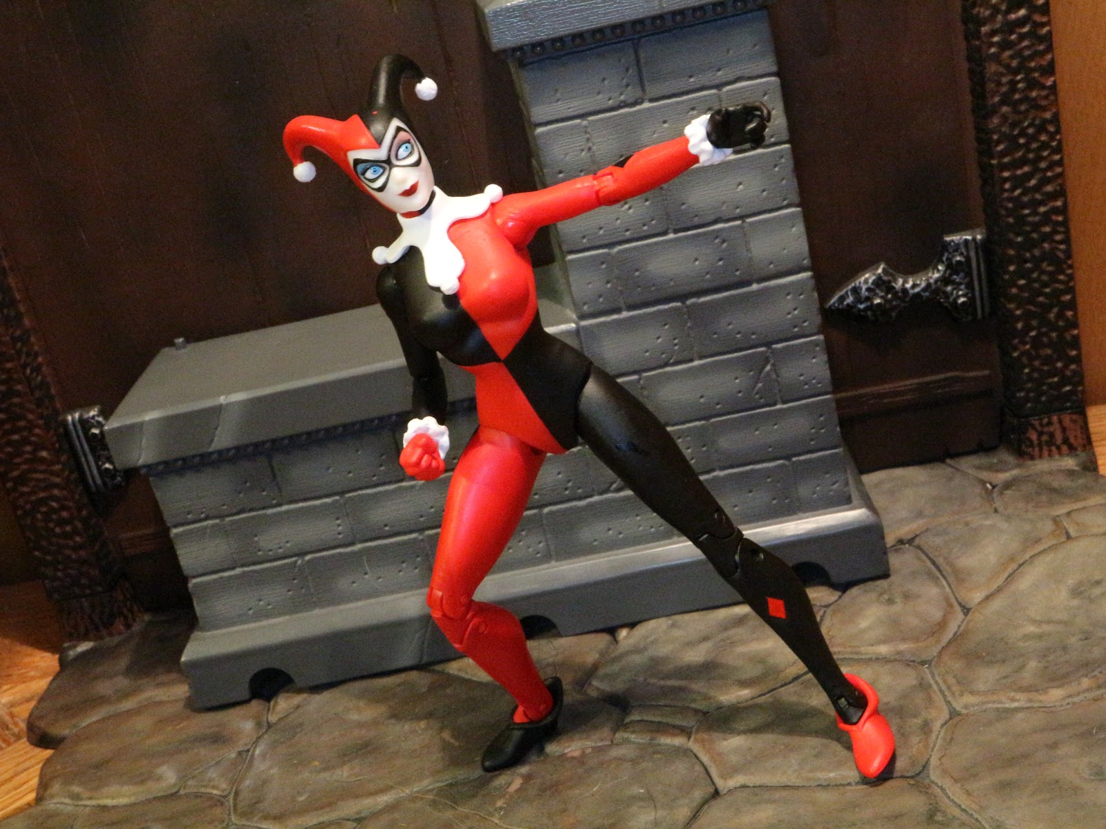 * Harley's articulation is a bit odd. There are definitely more joints here than on many DC figures, but they're not all that useful. The double hinged knees are great, but the limited ankles and the restricted hip joints make them pretty useless. Furthermore, the neck joint really seems like it's either a swivel joint or just a very poor balljoint.