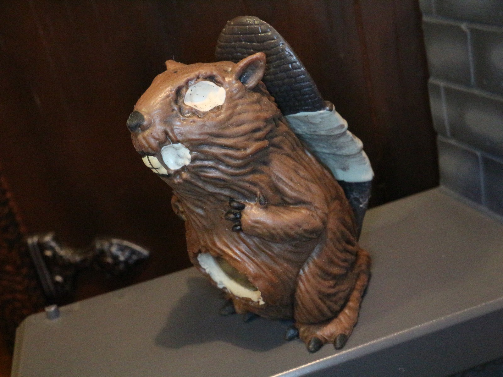 Accessories: Bernie the beaver, revolver, and a display stand.
